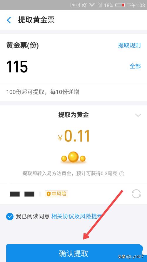 5、选择你需要提取的黄金票份数,同意协议并点击“确认提取”即可。