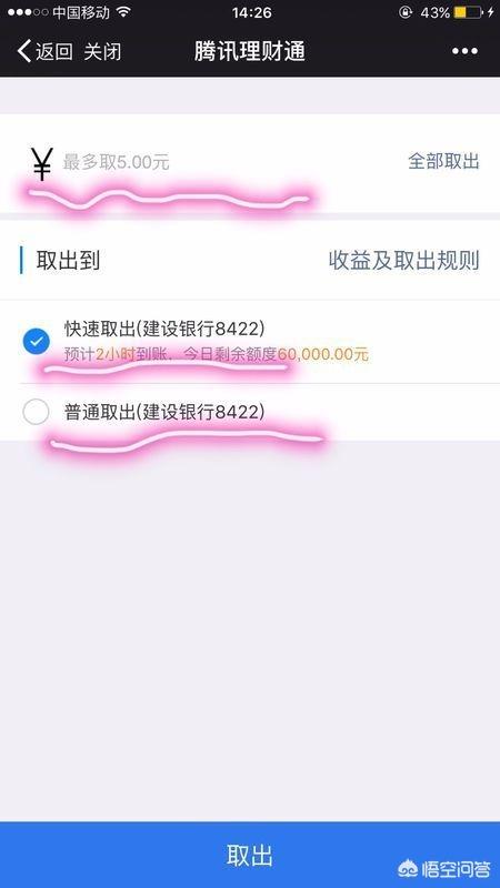 第五步:然后输入要取出的金额,再选择取出的方式,然后再点击“取出”