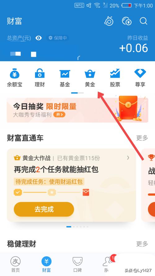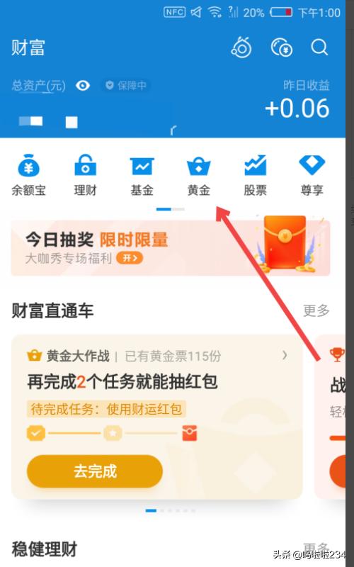 2、进入到“财富”界面,点击“黄金”,如图所示。