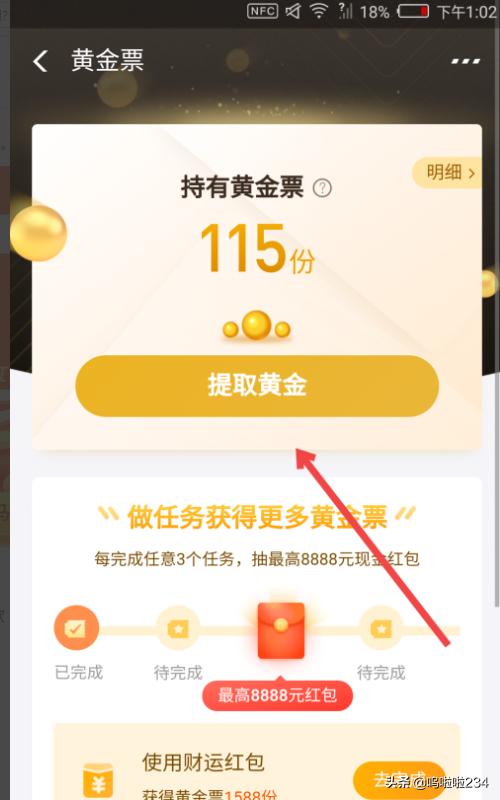4、进入到“黄金票”界面,点击“提取黄金”,如图所示。