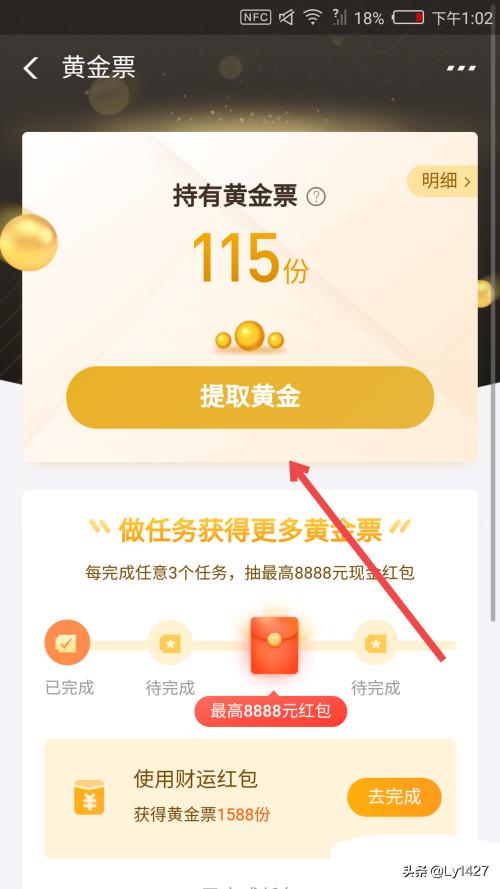 4、进入到“黄金票”界面,点击“提取黄金”。