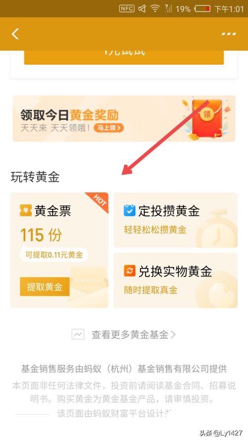 3、进入到“黄金”界面,点击“黄金票”,如图所示。