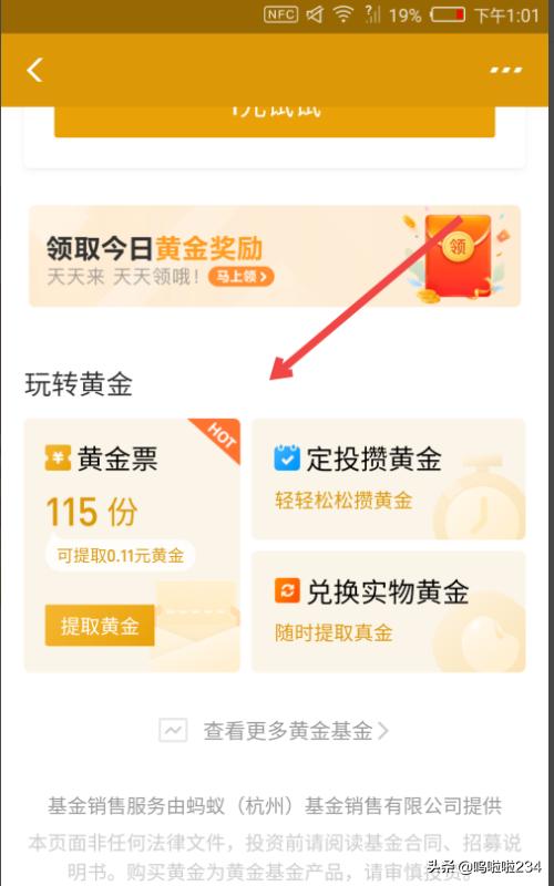 6、稍等一会儿系统就会将黄金票提取为黄金基金放到你的账户里了。